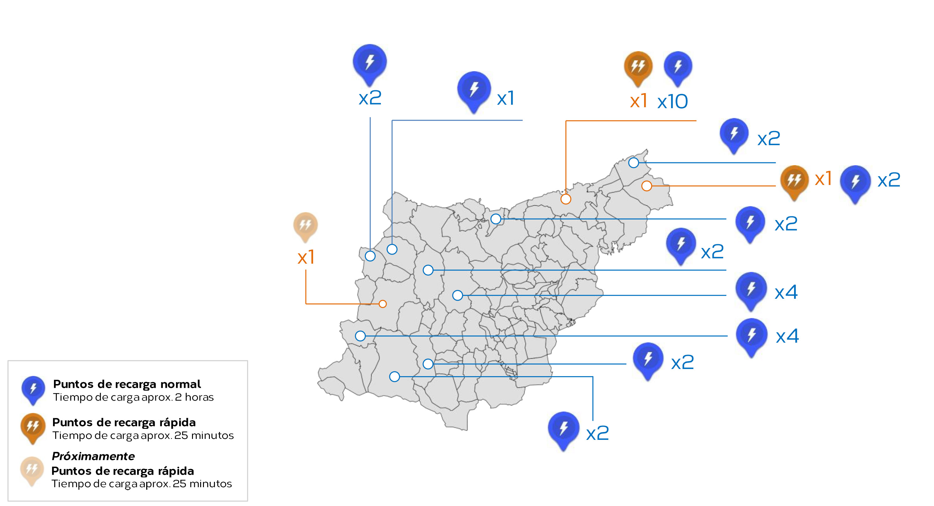 - Cuenta con 220 puntos de recarga de red pública repartidas en toda España, 52 de carga rápida.